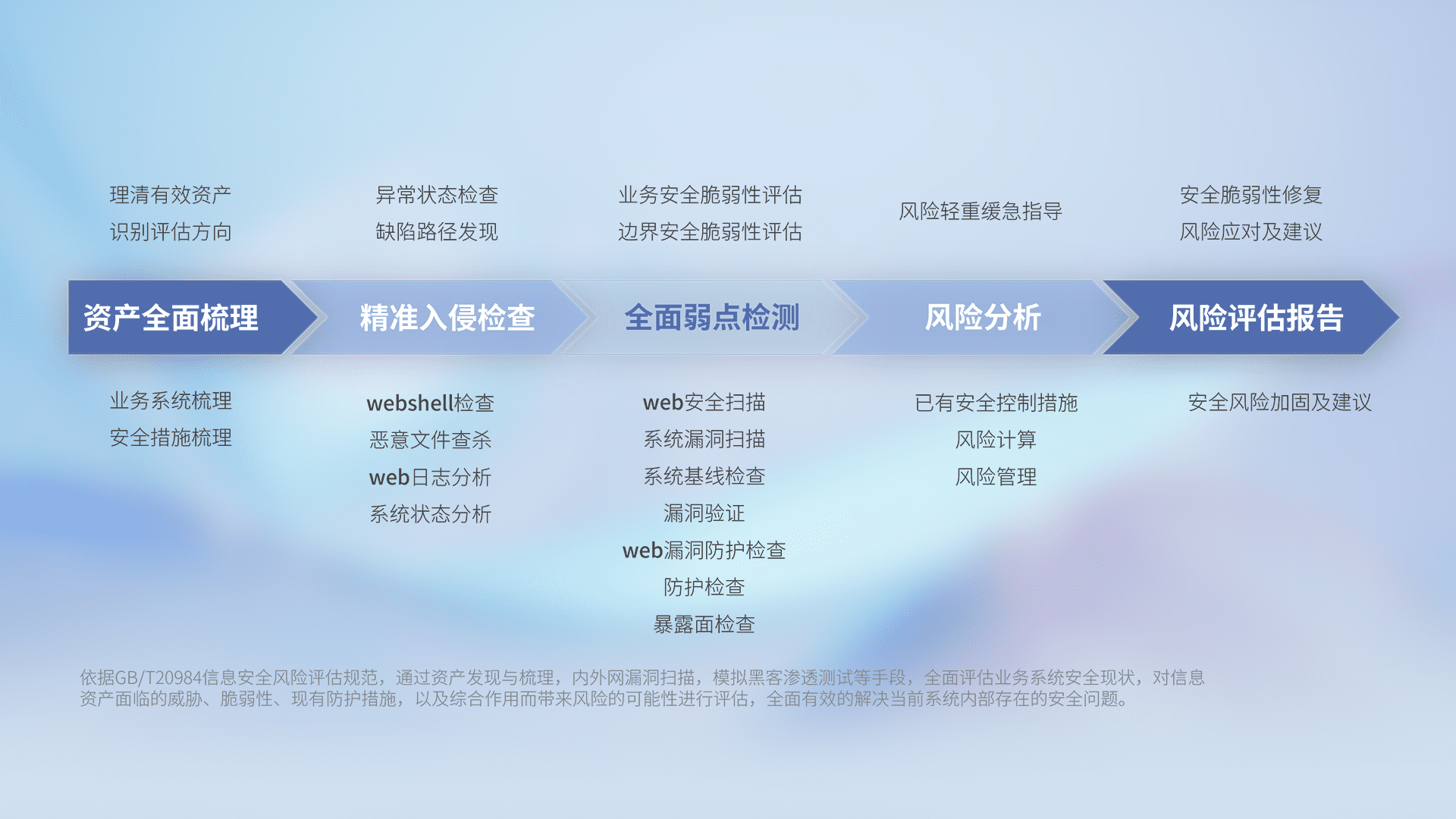 针对客户行业特性,,,,以专业的安全服务+多厂商联合解决方案提供专属的一站式安全管理服务,,,帮助客户全面感知网络空间威胁,,,基于识别、、、、检测、、、分析、、、、防护、、、监测、、、响应的服务理论模型,,,,从方案咨询、、、集成交付、、评估验证、、、、优化加固、、、、运维运营,,,致力于为客户提供完整的闭环管理式安全服务。。。。以实战经验为客户打造高抵御风险的安全体系,,,帮助客户发现威胁、、、、对抗威胁、、、、处置威胁,,,不断积累安全对抗能力,,,持续保障数字化安全。。